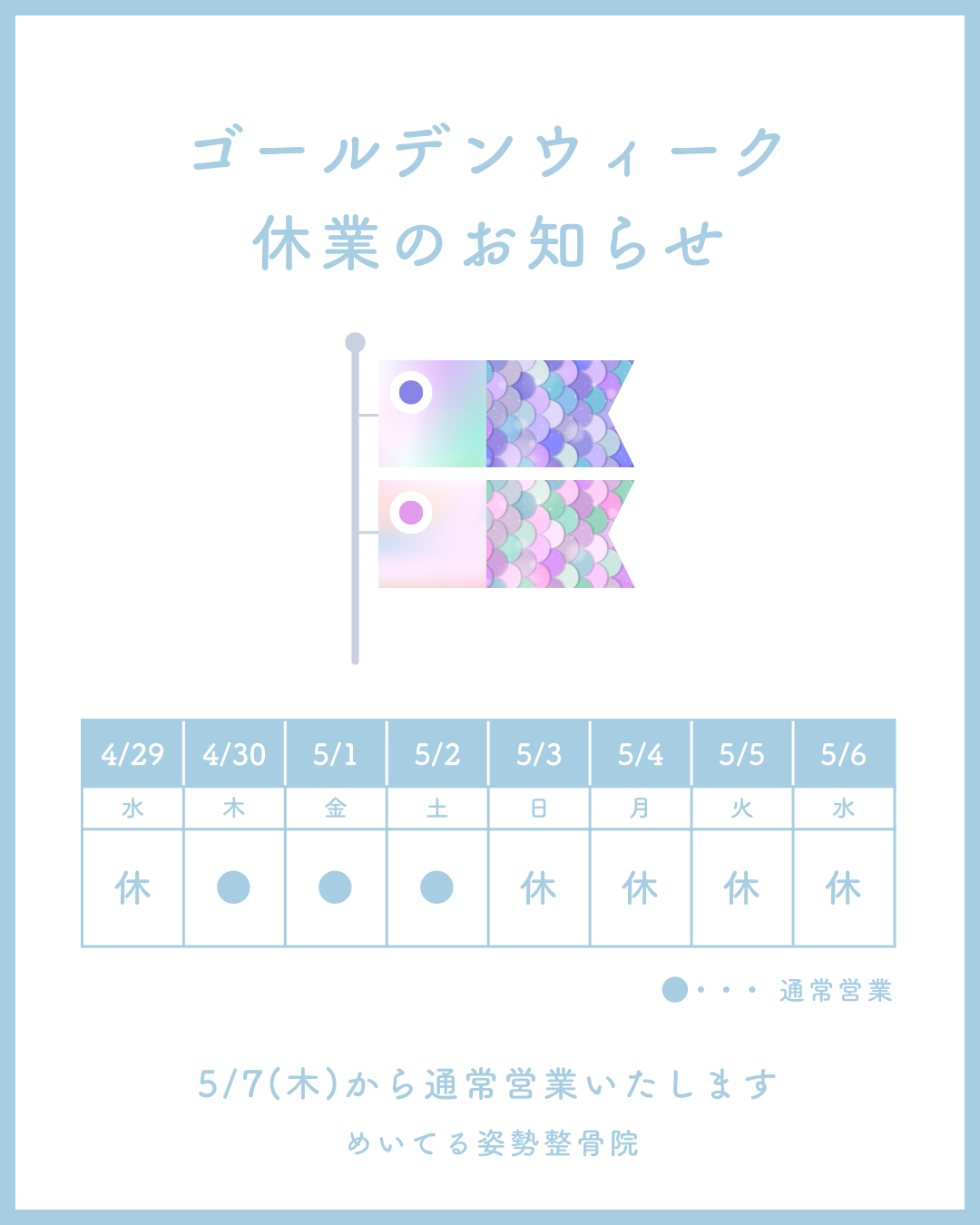 #森小路整骨院 #大阪市旭区整骨院 #旭区整骨院 #GW休業 #ゴールデンウィーク