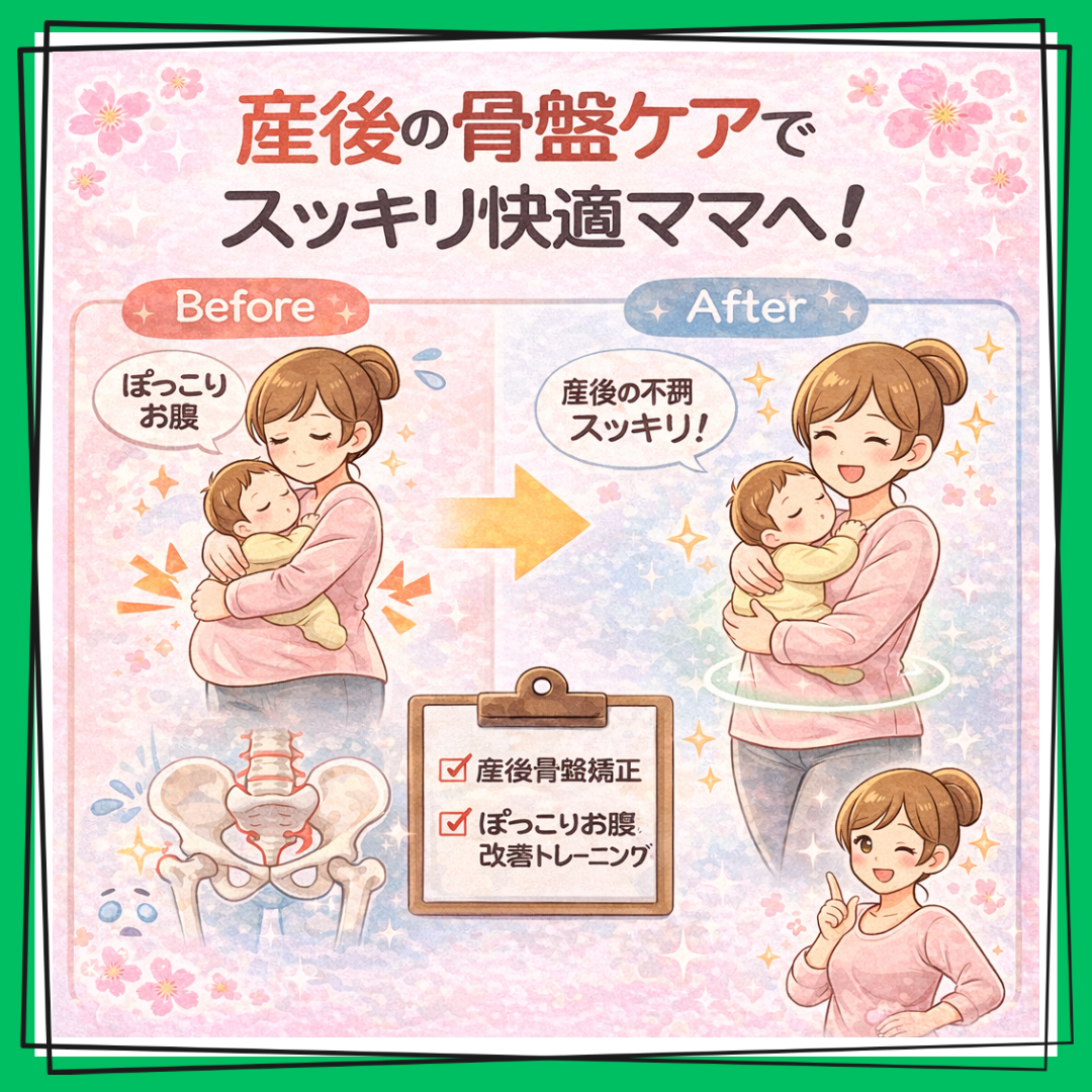 #産後骨盤矯正 #産後ケア #骨盤矯正 #ぽっこりお腹改善トレーニング #姿勢改善 #大阪市旭区整骨院 #めいてる姿勢整骨院